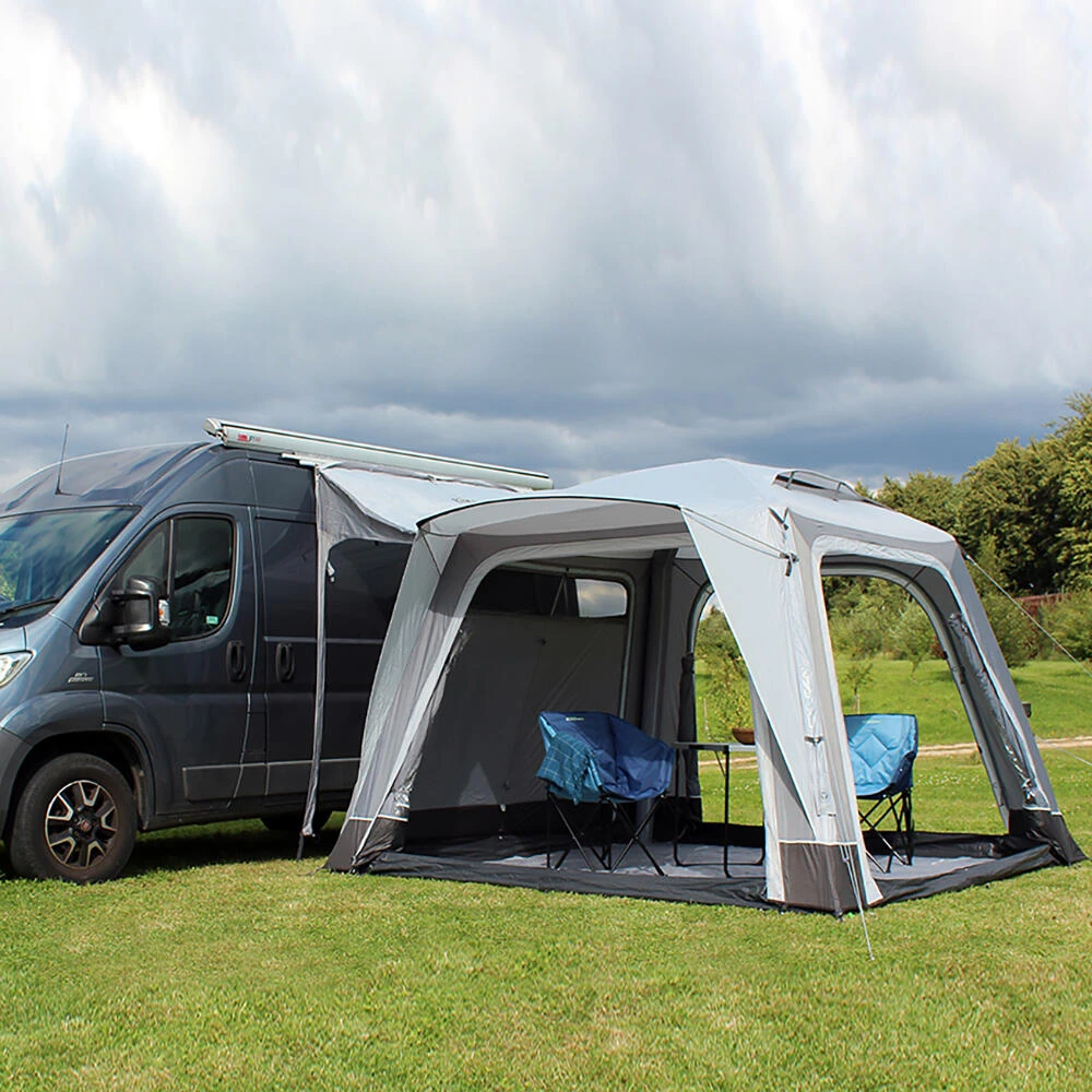 Outdoor Revolution’s quick to pitch lightweight Cayman Air has asingle point inflation family drive away awning is available in three ergonomic fixing height options to offer a great fit.