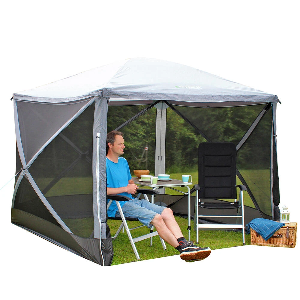 A 4 sided lightweight freestanding gazebo that can literally be pitched in seconds thanks to the fibreglass pop up system.